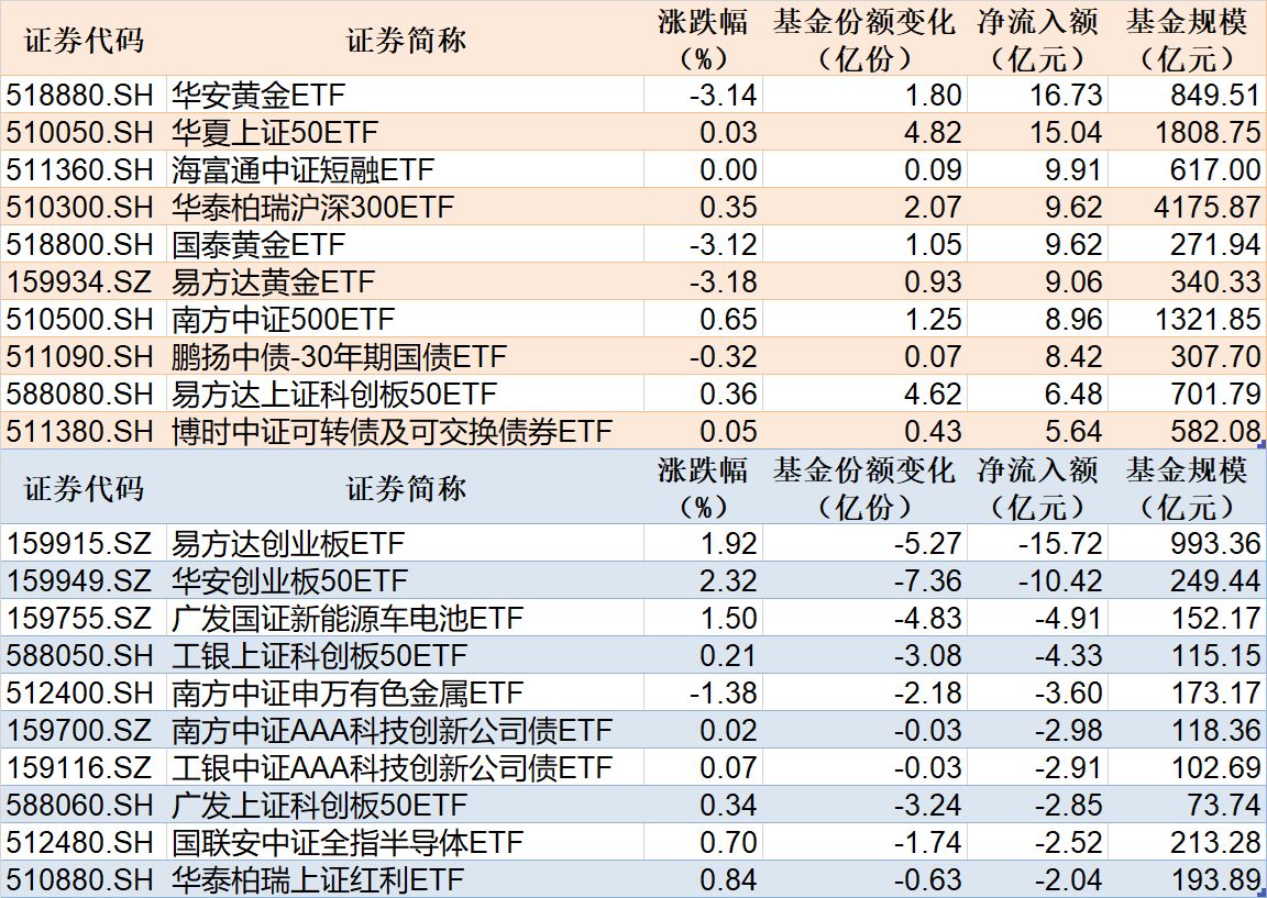 與此同時(shí),易方達(dá)創(chuàng)業(yè)板ETF基金份額減少5.27億份,凈流出額為15.72億元;華安創(chuàng)業(yè)板50ETF基金份額減少7.36億份,凈流出額為10.42億元;廣發(fā)國(guó)證新能源車電池ETF基金份額減少4.83億份,凈流出額為4.91億元。