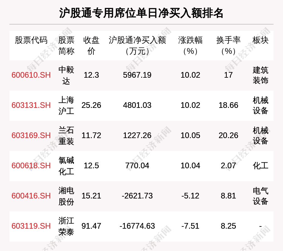 在龍虎榜中,涉及滬股通專用席位的個股有6只,中毅達的滬股通專用席位凈買入額最大,凈買入5967.19萬元。