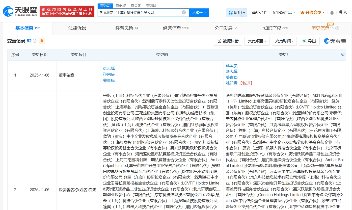 每經AI快訊,天眼查工商信息顯示,近日,智元機器人關聯公司智元創新(上海)科技有限公司發生工商變更,企業名稱變更為智元創新(上海)科技股份有限公司,同時多位主要人員發生變更。該公司成立于2023年2月,法定代表人為鄧泰華,注冊資本約8264萬元人民幣,經營范圍包括智能機器人的研發、服務消費機器人銷售、智能機器人銷售等。股東信息顯示,該公司由桑蓬(上海)科技合伙企業(有限合伙)、廣西騰訊創業投資有限公司、比亞迪等共同持股。