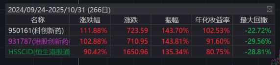 歷史業績來看,自2024年924行情以來,截止2025年10月底,科創創新藥漲幅領先港股創新藥近10個百分點,展現出更高的彈性。