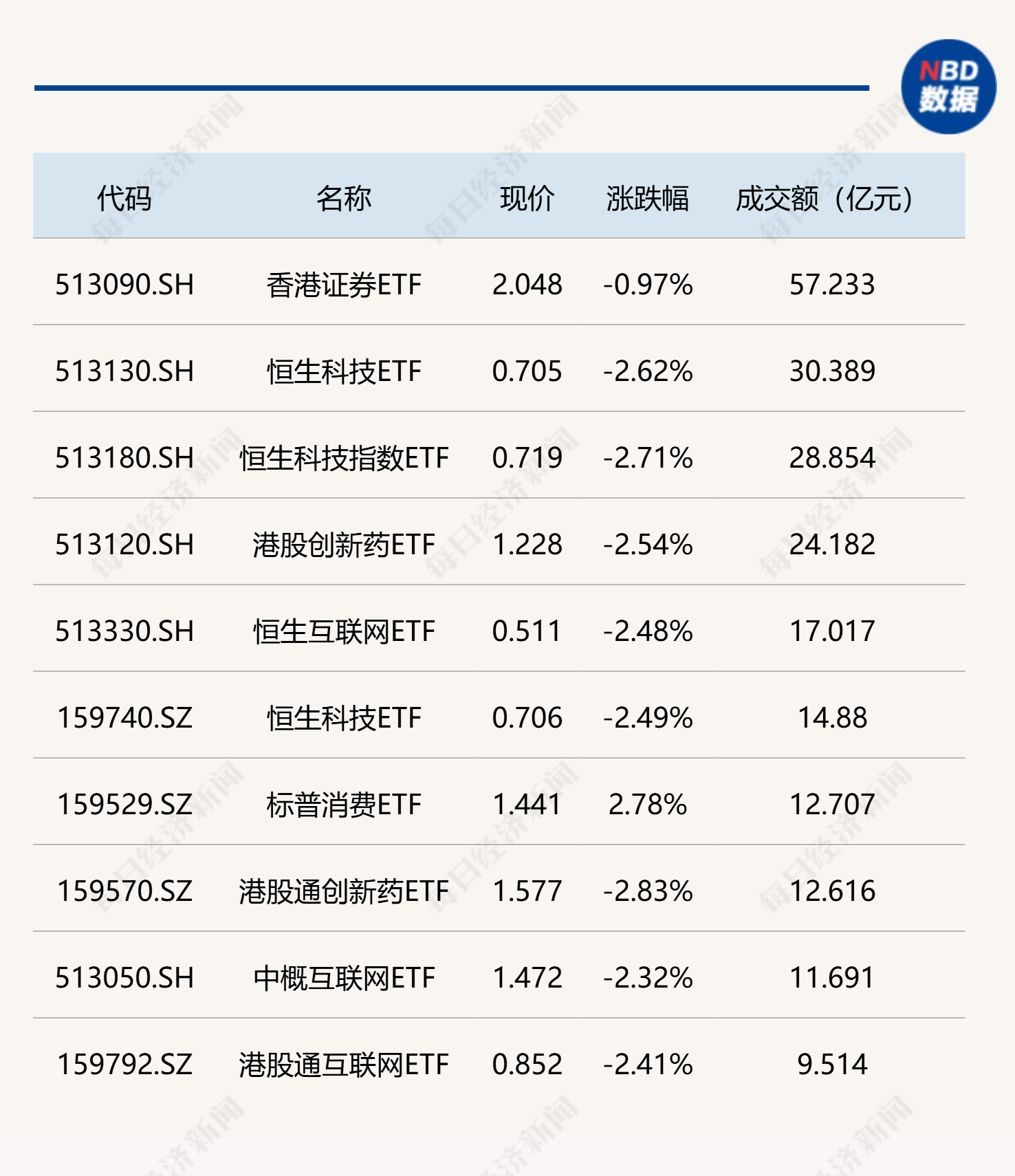 市場(chǎng)早盤震蕩調(diào)整,科創(chuàng)芯片和證券相關(guān)ETF交投活躍。科創(chuàng)芯片ETF半日成交額超16億元。跨境ETF方面,香港證券ETF半日成交超57億元。