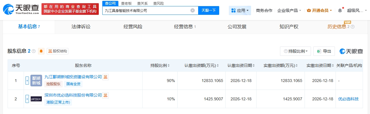 優(yōu)必選等在九江成立具身智能技術(shù)公司